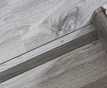 Способ монтажа: алюминиевый порожек крепится в проем между двумя напольными покрытиями на саморезы.